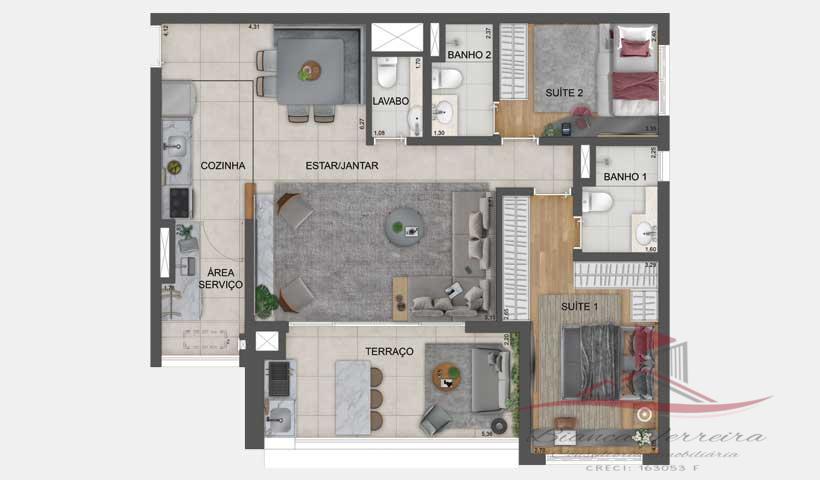 • Área Privativa: 66,00 metros