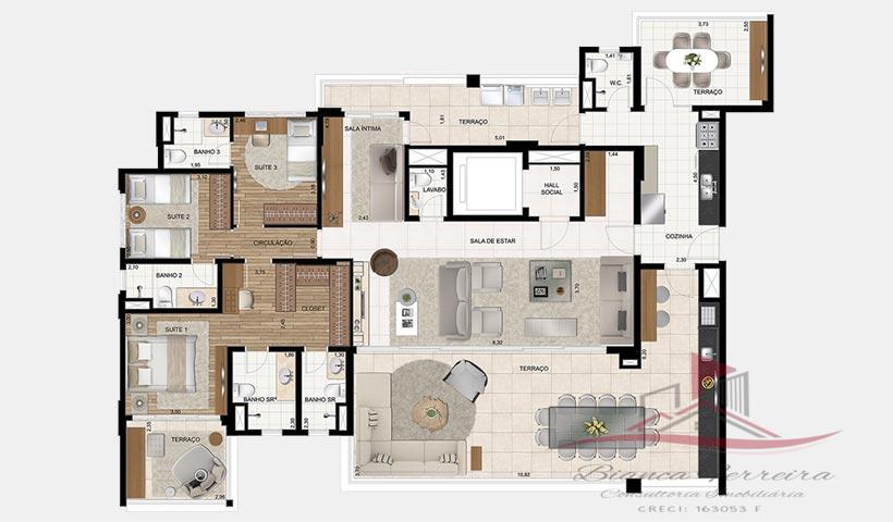 Nº de Dormitórios: 4 suítes / opção sala ampliada 3 suítes