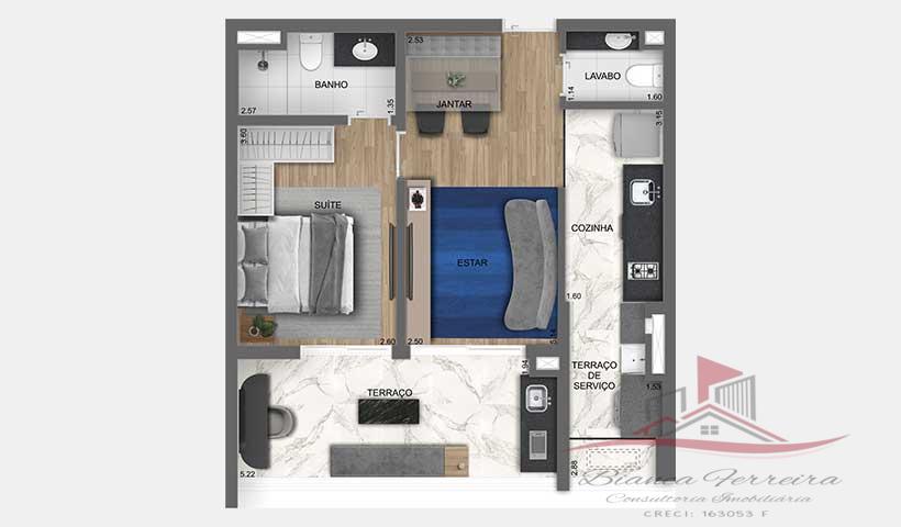 • 1 Quarto(s), 1 Suíte(s), 2 Banheiro(s), 1 Vaga(s)