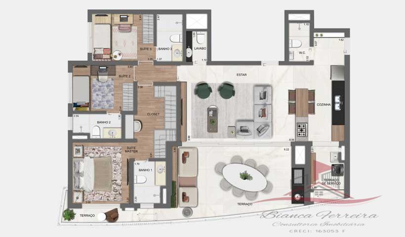 Arkadio by Ott apartamento de 142m com 3 suítes