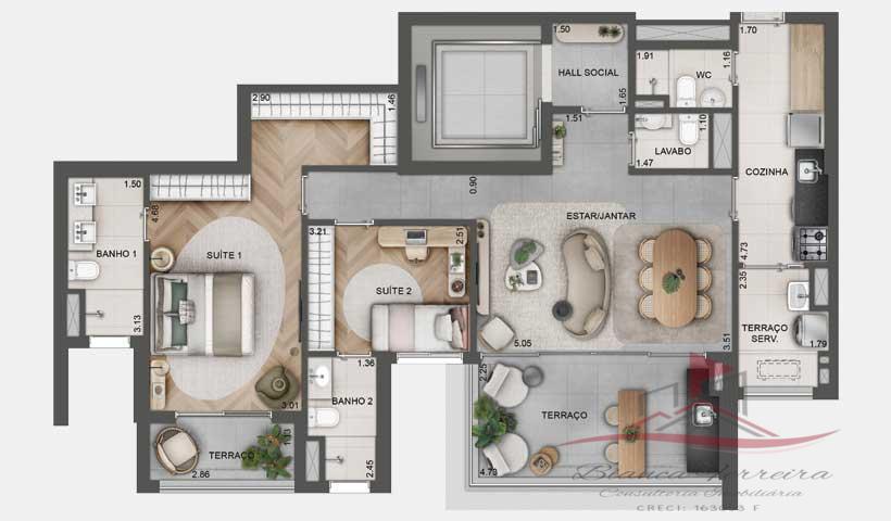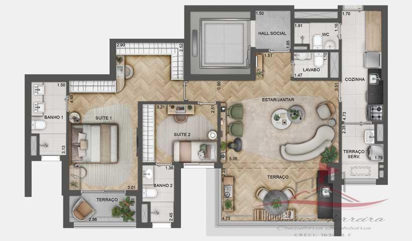 Apartamento de 108m + depósito (2m) e 2 suítes Chácara Santo Antônio.