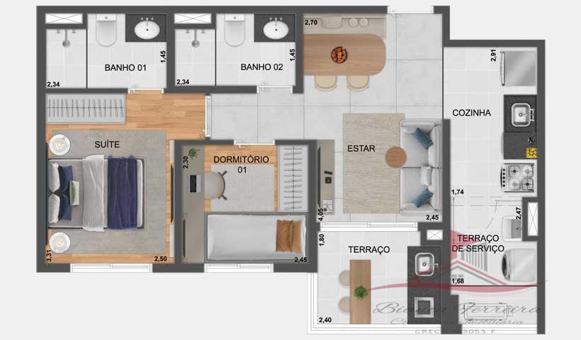 • Área Privativa: 56,00 metros / unid. 111