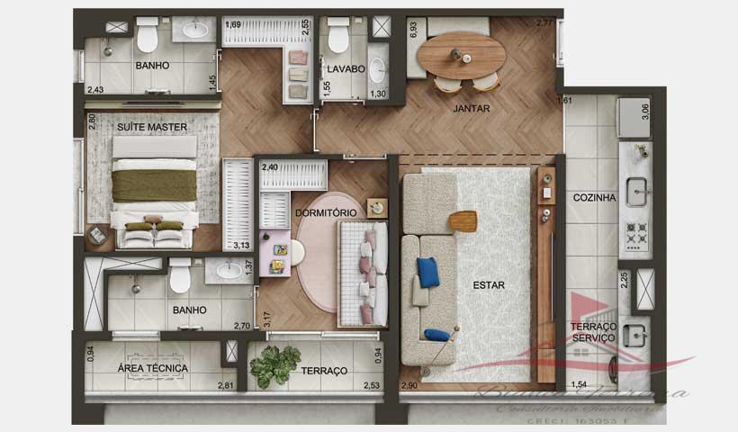 59 e 64 m² (2D) ? 1 vaga: 104 unidades