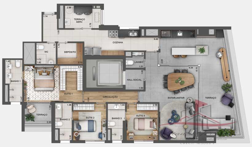 Apartamento de 164 m + depósito (2m) e 2 suítes Chácara Santo Antônio.